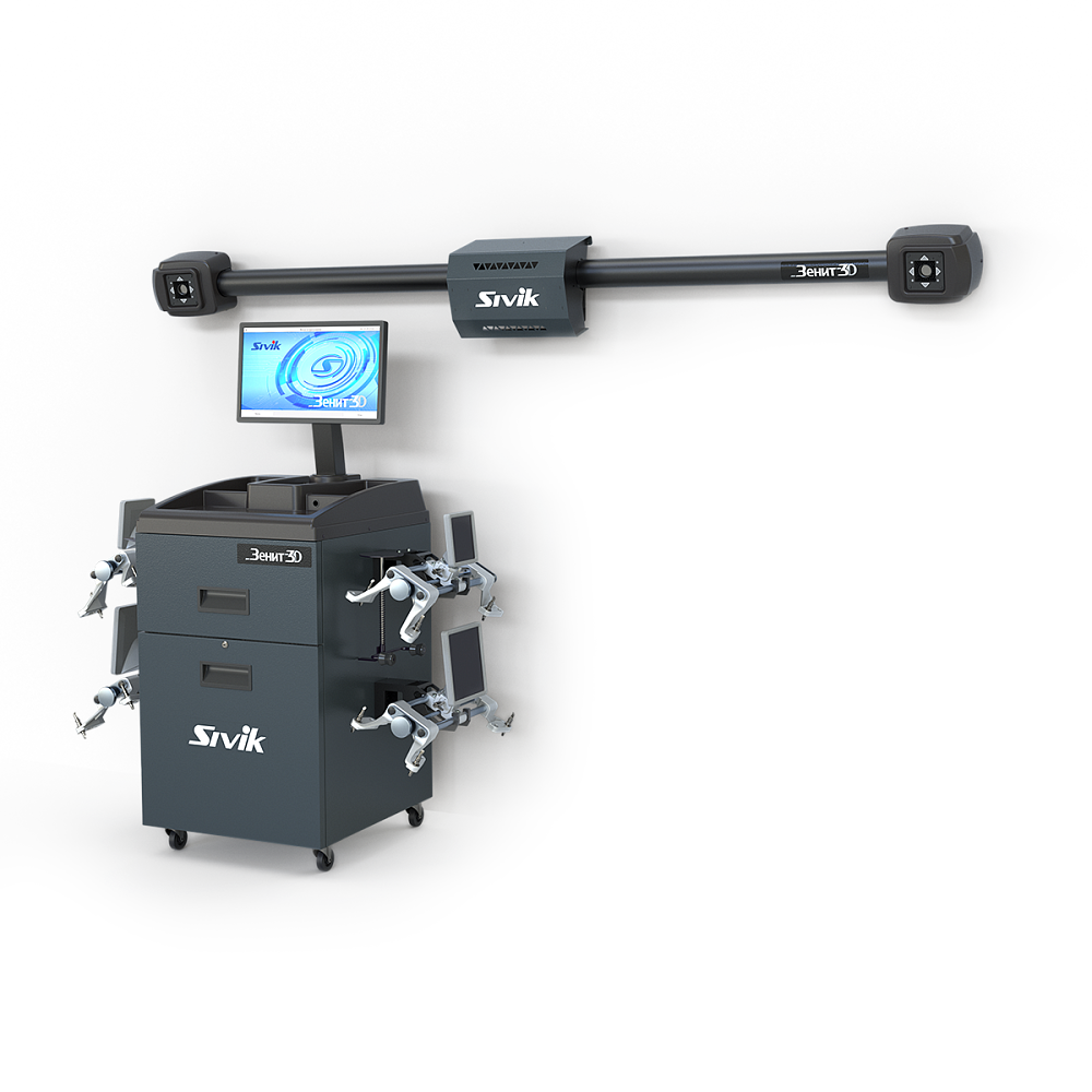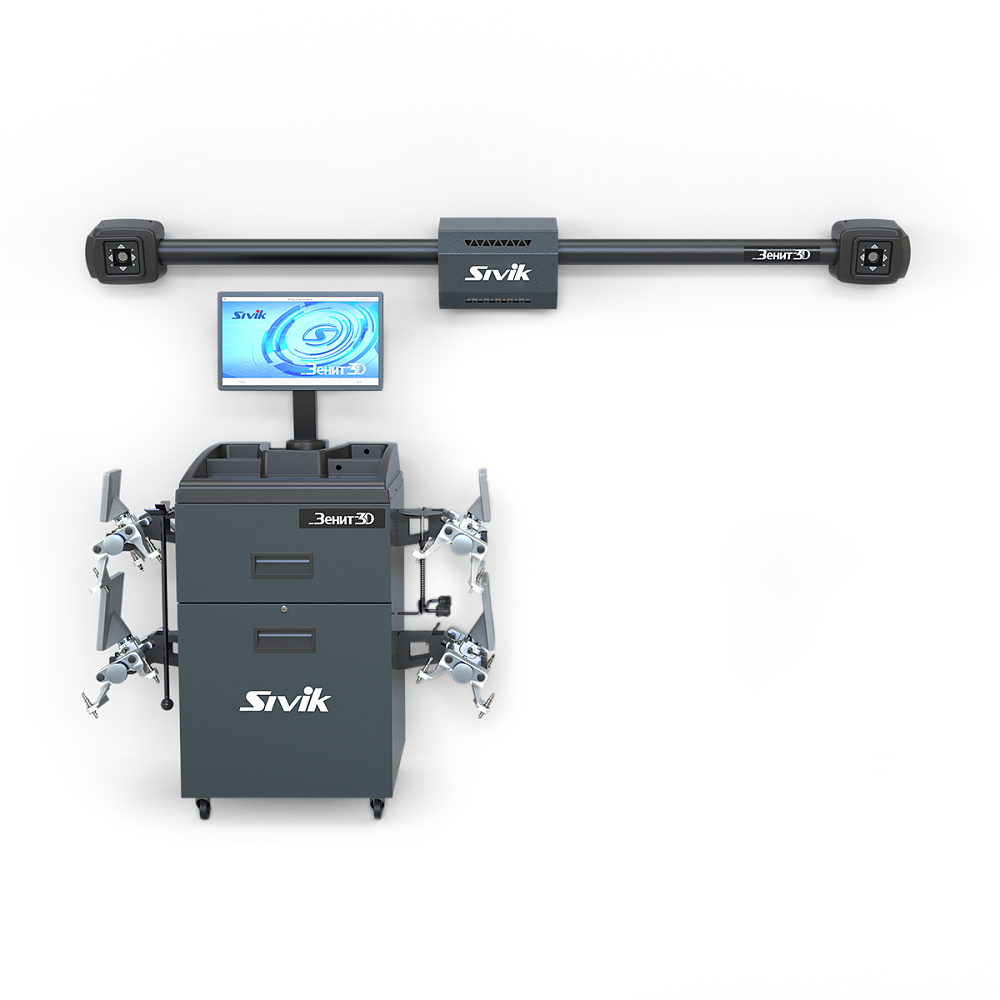 Стенд для регулировки углов установки колес для любых типов легковых автомобилей с диаметром дисков от 12 до 24 дюймов. Данная модель включает в себя технологии 3D-View и HeightRange, а также систему 3D моделирования. Работа стенда осуществляется на базе Windows 10 и собственного специального ПО Зенит-3D от SIVIK.