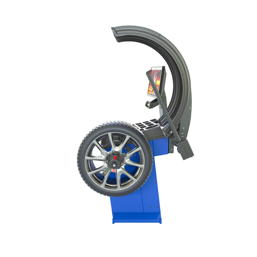 • Станок автоматически вводит ширину диска. УЗ-датчик моментально считывает ширину при опускании кожуха. Повышается скорость балансировки штампованных колес.