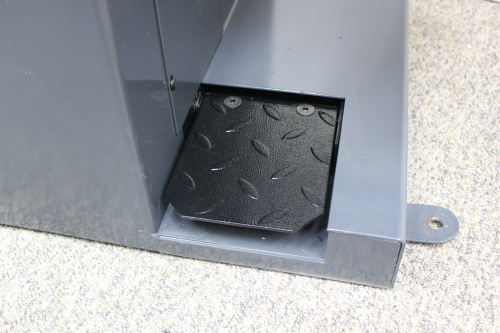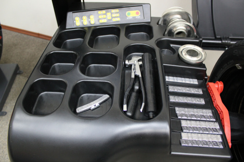 Станок оснащен педалью фиксации колеса, что упрощает процесс установки грузика;