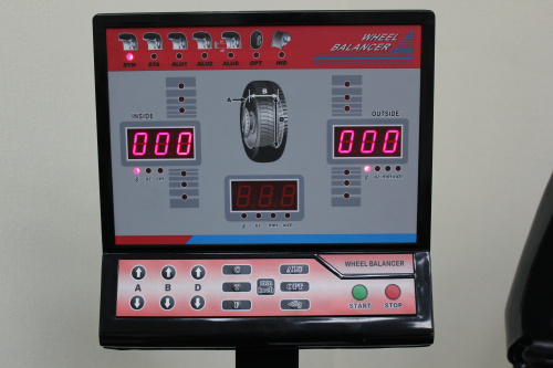 Балансировочный станок, выносной дисплей, автоматическое измерение величины вылета и диаметра колеса, диаметр диска Ø 12-24", ширина диска 1,5-12", вес колеса до 65кг., мотор 220V/0,257 kWt, точность балансировки + 1г.