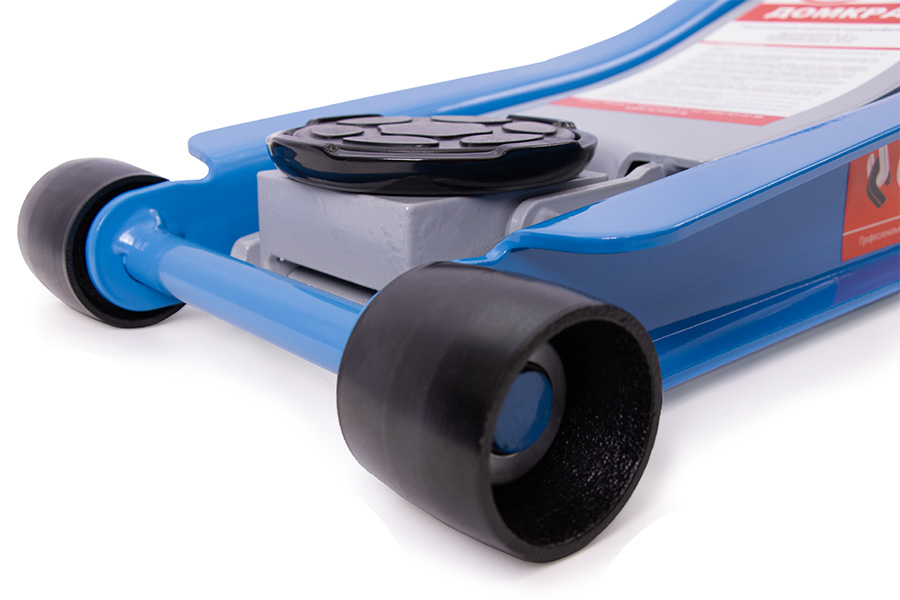 Подкатной гидравлический домкрат имеет ручной привод и предназначен для подъема машины при осуществлении ремонтных работ — к примеру, замены колес. Он отлично подойдет для личного использования на даче, в гараже или для работы на небольшой шиномонтажной станции.