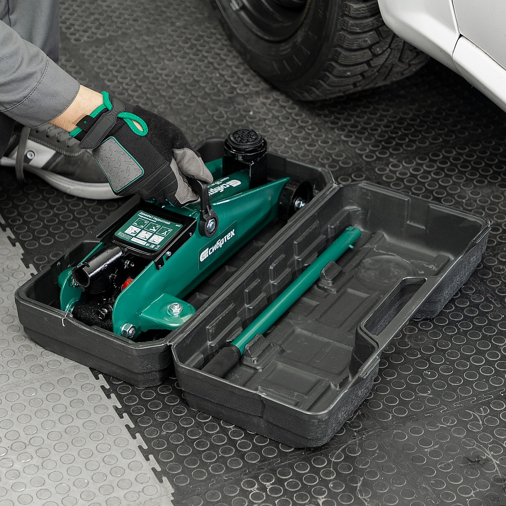 Гидравлический подкатной домкрат Сибртех 50835, поставляющийся в пластиковом кейсе, с высотой подхвата 135 мм, предназначен для подъема грузов массой до 2 т на высоту до 330 мм. Применяется для обслуживания автомобилей со стандартным клиренсом. Компактный домкрат подходит для самостоятельного использования автовладельцами.