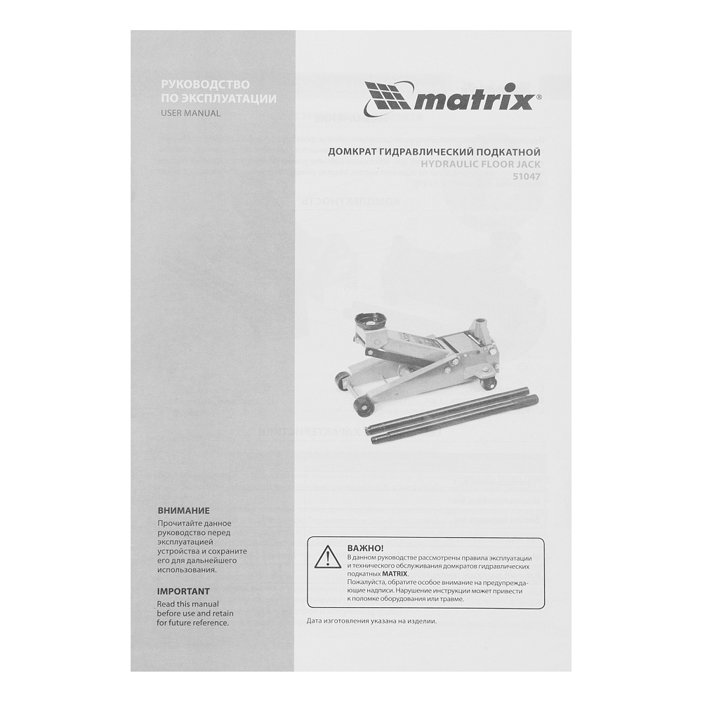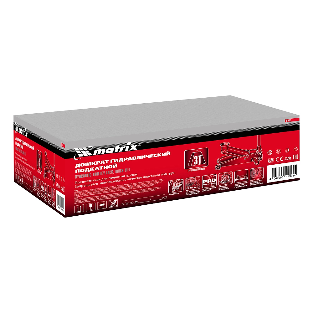 Домкрат гидравлический подкатной профессиональный, быстрый подъем, 3 т, 130-465 мм. Quick Matrix