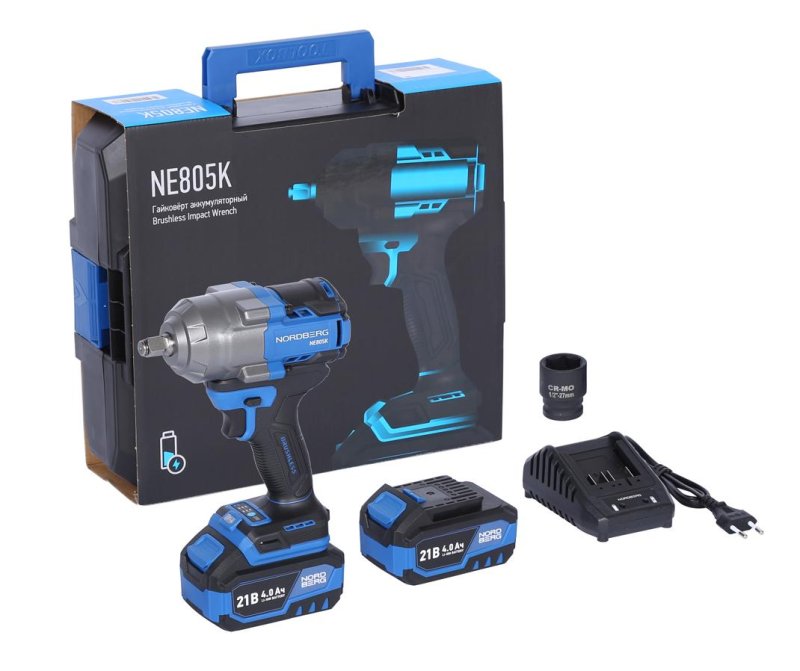 Гайковерт аккумуляторный, 1/2", 21 В, 1000 Нм, 2 аккумулятора 4 A и зарядное устройство, в кейсе NORDBERG NE805K купить в Уфе цена ✅ - Все для СТО