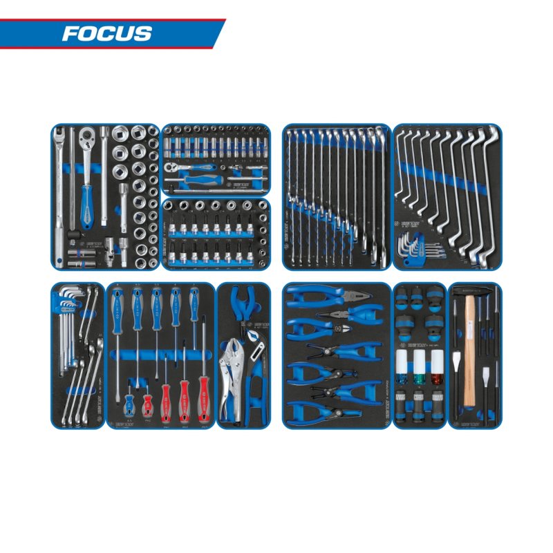 934-188MRVD KING TONY Набор инструментов "FOCUS" для тележки, 11 ложементов, 188 предметов купить в Уфе цена ✅ - Все для СТО