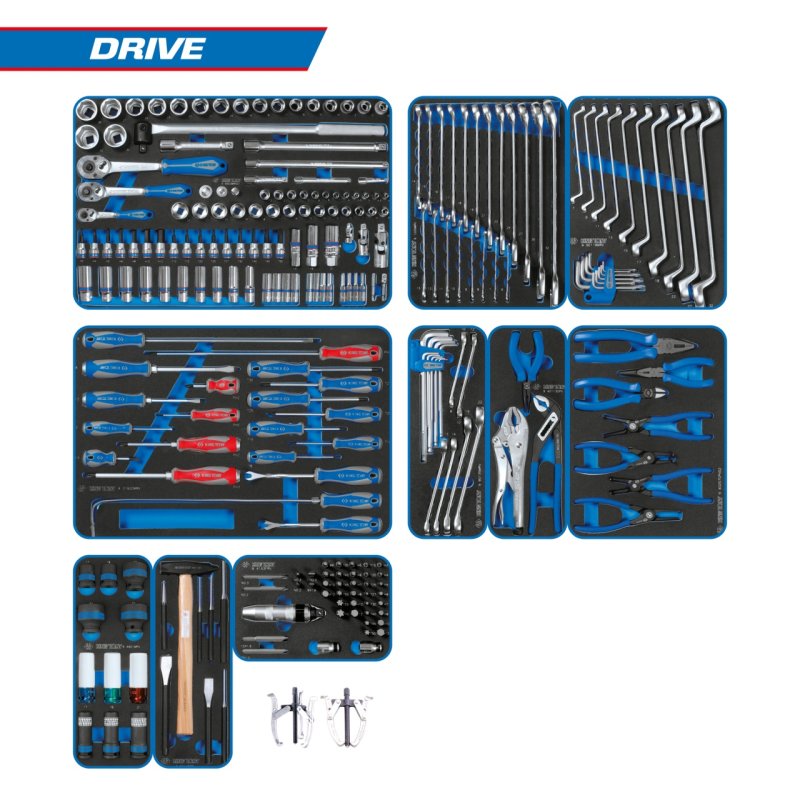 934-251MRVD KING TONY Набор инструментов "DRIVE" для тележки, 10 ложементов, 251 предмет купить в Уфе цена ✅ - Все для СТО