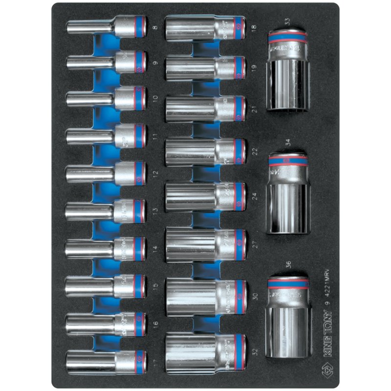 KING TONY Набор глубоких торцевых головок 1/2", двенадцатигранные, 8-36 мм, ложемент, 21 предмет KING TONY 9-4221MRV купить в Уфе цена ✅ - Все для СТО