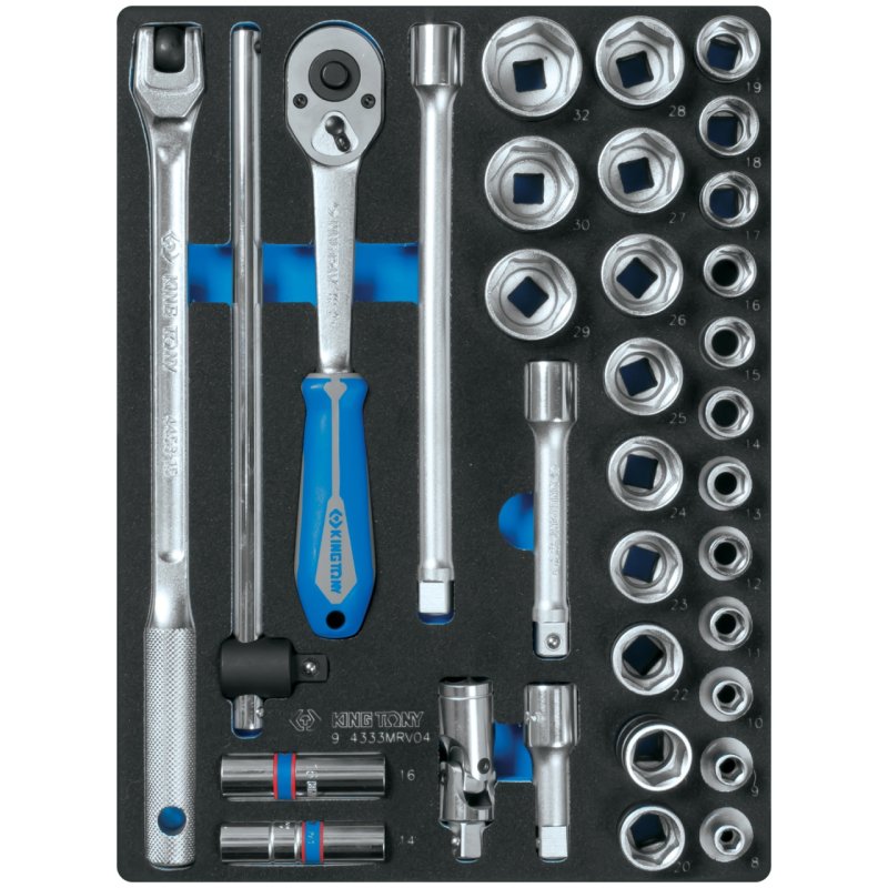 KING TONY Набор торцевых головок 1/2" с принадлежностями, шестигранные, ложемент, 33 предмета KING TONY 9-4333MRV04 купить в Уфе цена ✅ - Все для СТО