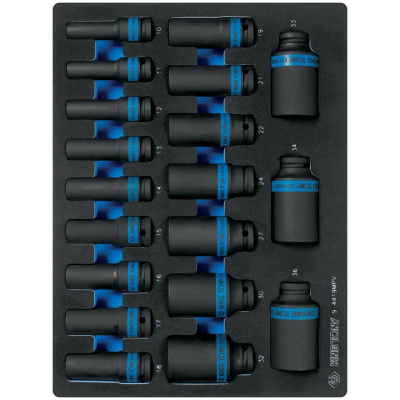 KING TONY Набор ударных глубоких торцевых головок 1/2", шестигранные, 10-36 мм, ложемент, 19 предметов KING TONY 9-4419MPV купить в Уфе цена ✅ - Все для СТО