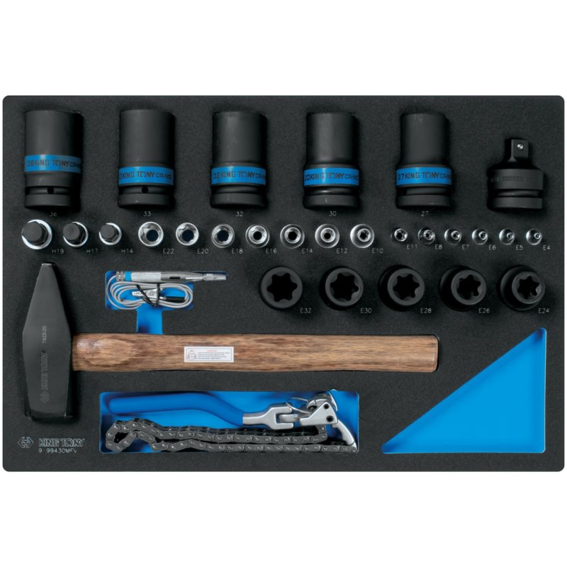 KING TONY Набор ударных головок 1", головок Torx Е-стандарт, молоток, съемник, тестер, ложемент, 30 предметов KING TONY 9-99430MFV купить в Уфе цена ✅ - Все для СТО