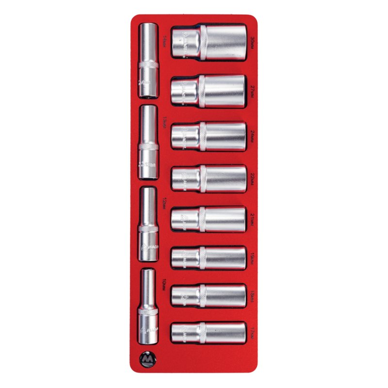 МАСТАК Набор глубоких головок 1/2”, двенадцатигранные, ложемент, 12 предметов МАСТАК 5-014212