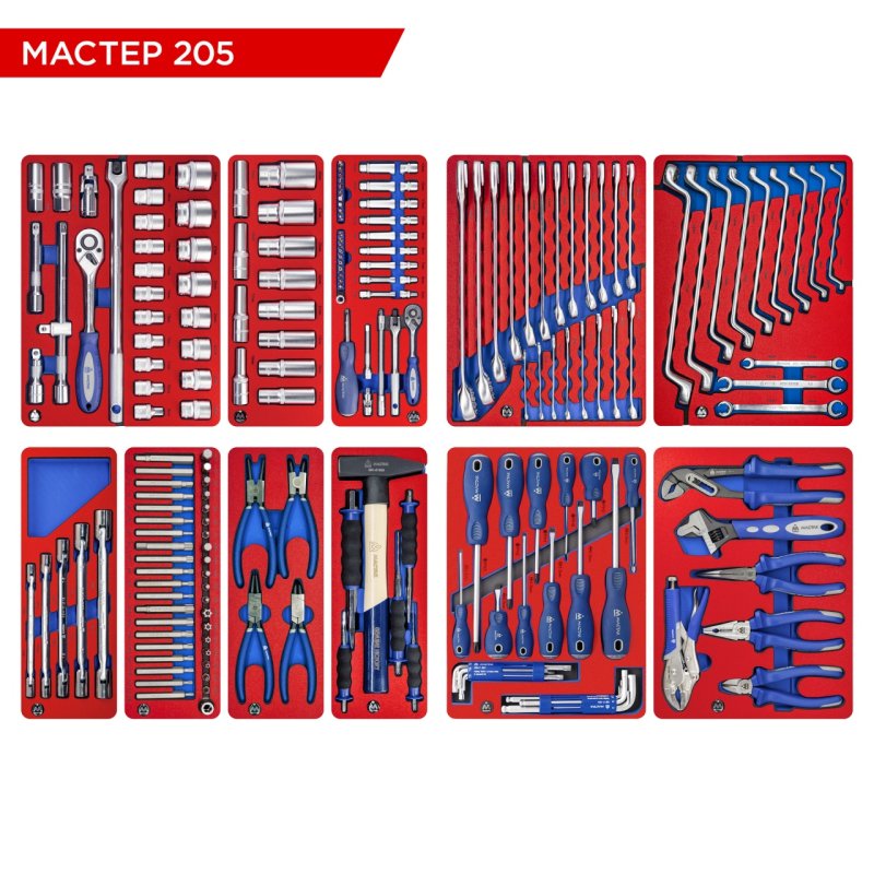 МАСТАК Набор инструментов "МАСТЕР" для тележки, 11 ложементов, 205 предметов купить в Уфе цена ✅ - Все для СТО