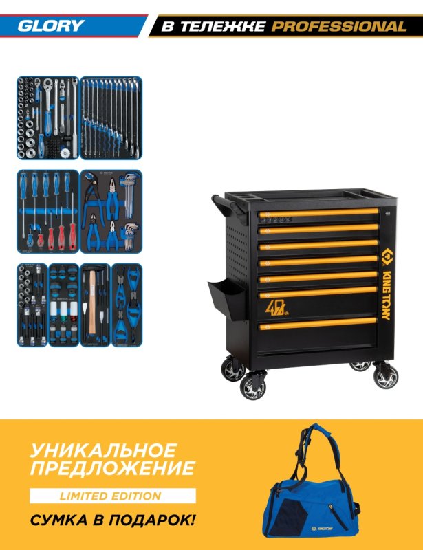 Набор инструментов 152 предмета, "GLORY", в черной тележке KING TONY 9G38-152MRV40 купить в Уфе цена ✅ - Все для СТО