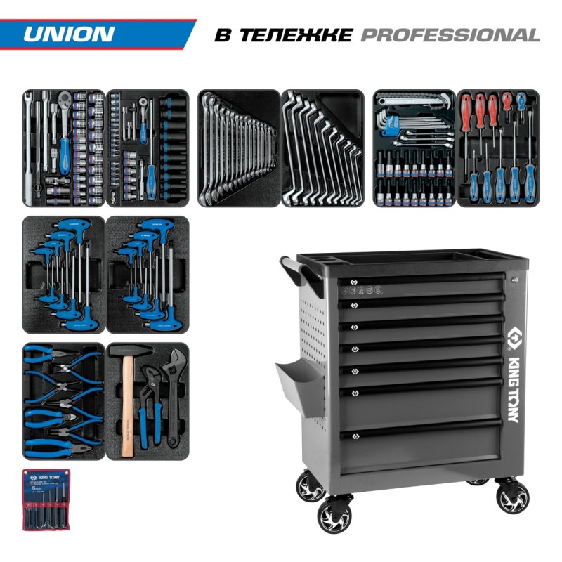 Набор инструментов 173 предмета, "UNION", в серой тележке KING TONY 9G38-000MRG купить в Уфе цена ✅ - Все для СТО