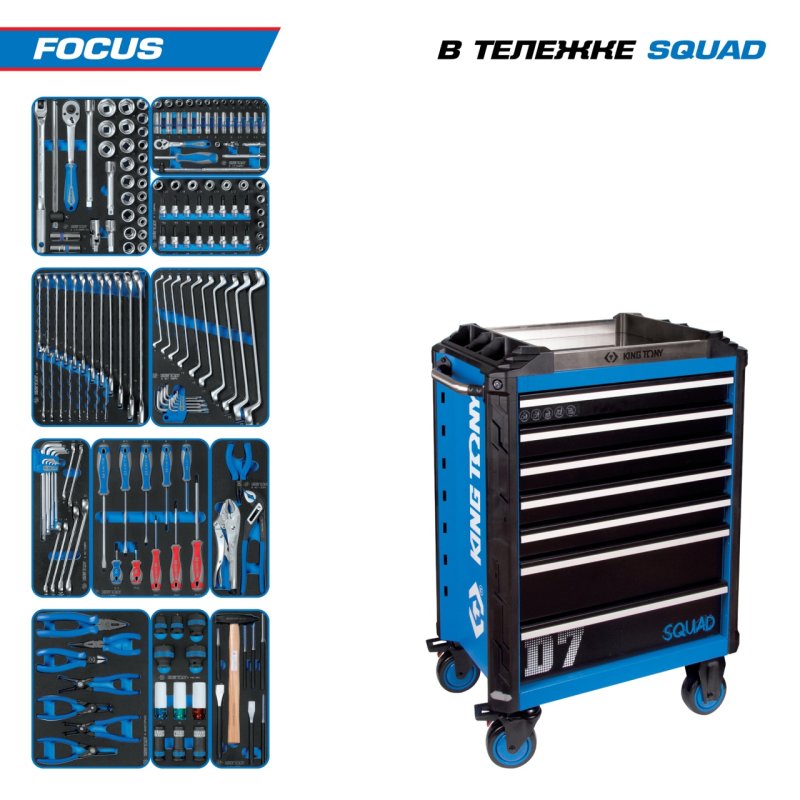 Набор инструментов 188 предметов, "FOCUS", в синей тележке KING TONY 9SQ31-188MRV купить в Уфе цена ✅ - Все для СТО