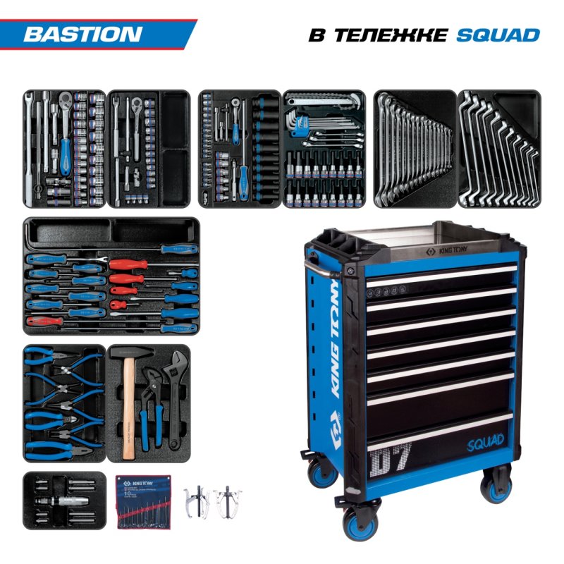 Набор инструментов 204 предмета, "BASTION", в синей тележке KING TONY 9SQ31-100MR купить в Уфе цена ✅ - Все для СТО