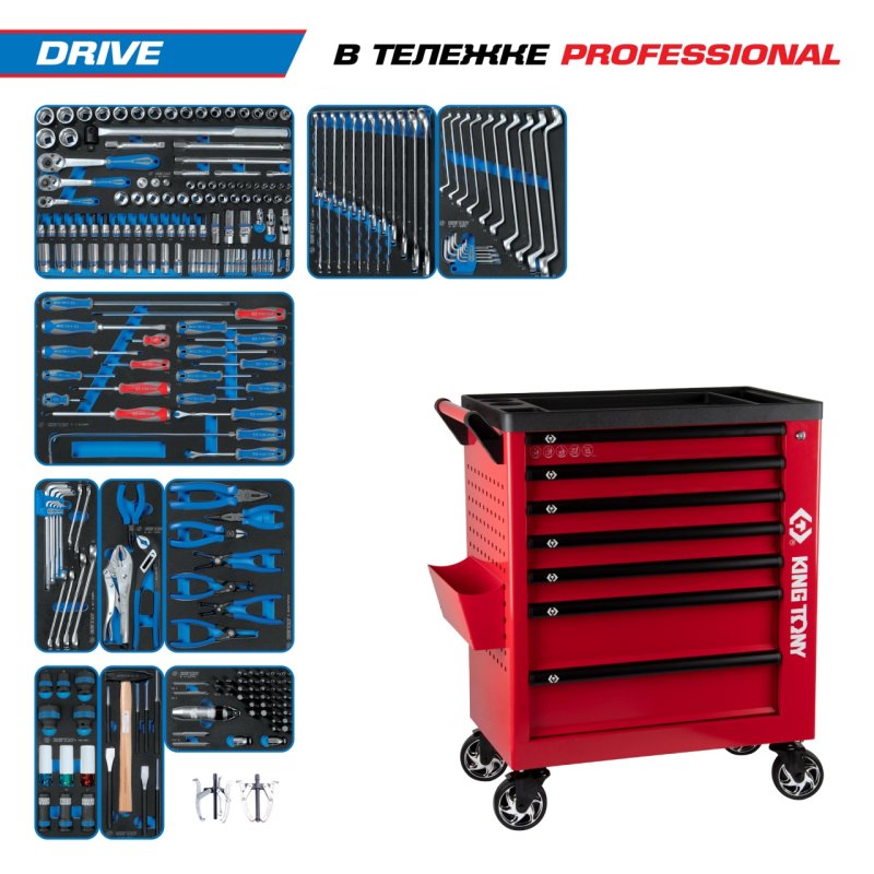 Набор инструментов 251 предмет, "DRIVE", в красной тележке KING TONY 9G38-251MRVR купить в Уфе цена ✅ - Все для СТО