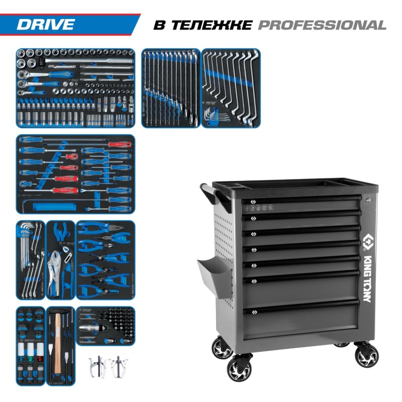 Набор инструментов 251 предмет, "DRIVE", в серой тележке KING TONY 9G38-251MRVG купить в Уфе цена ✅ - Все для СТО
