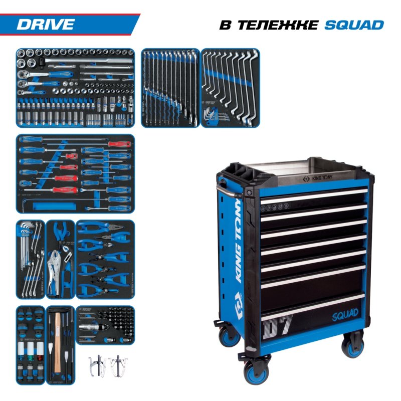 Набор инструментов 251 предмет, "DRIVE", в синей тележке KING TONY 9SQ31-251MRV купить в Уфе цена ✅ - Все для СТО