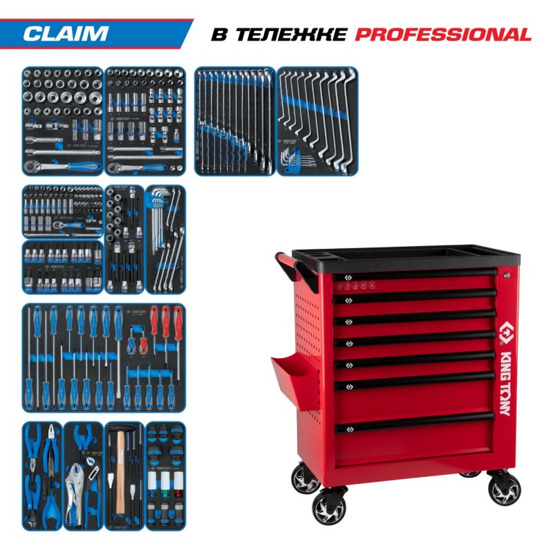 Набор инструментов 286 предметов, "CLAIM", в красной тележке KING TONY 9G38-286MRVR купить в Уфе цена ✅ - Все для СТО