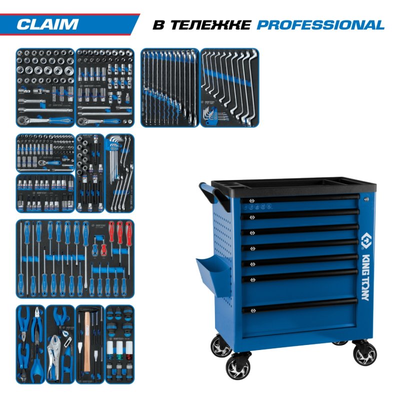 Набор инструментов 286 предметов, "CLAIM", в синей тележке KING TONY 9G38-286MRVB купить в Уфе цена ✅ - Все для СТО