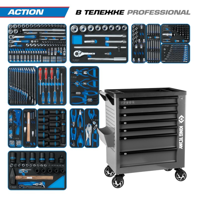 Набор инструментов 327 предметов, "ACTION", в серой тележке KING TONY 9G38-327MRVG купить в Уфе цена ✅ - Все для СТО