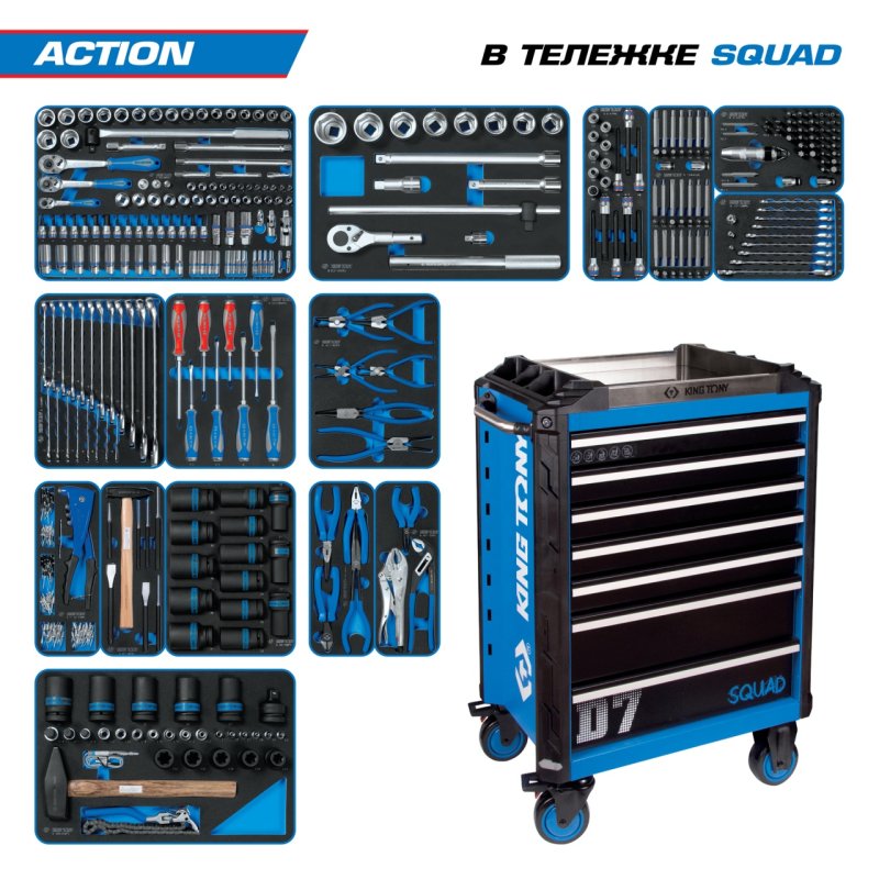 Набор инструментов 327 предметов, "ACTION", в синей тележке KING TONY 9SQ31-327MRV купить в Уфе цена ✅ - Все для СТО