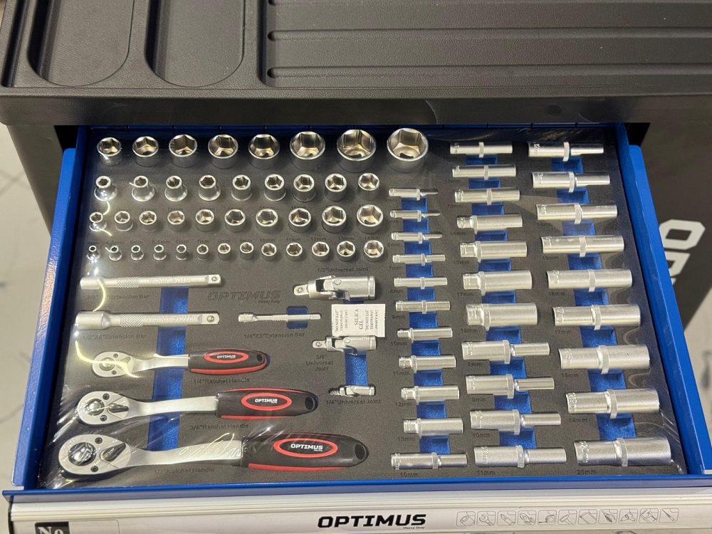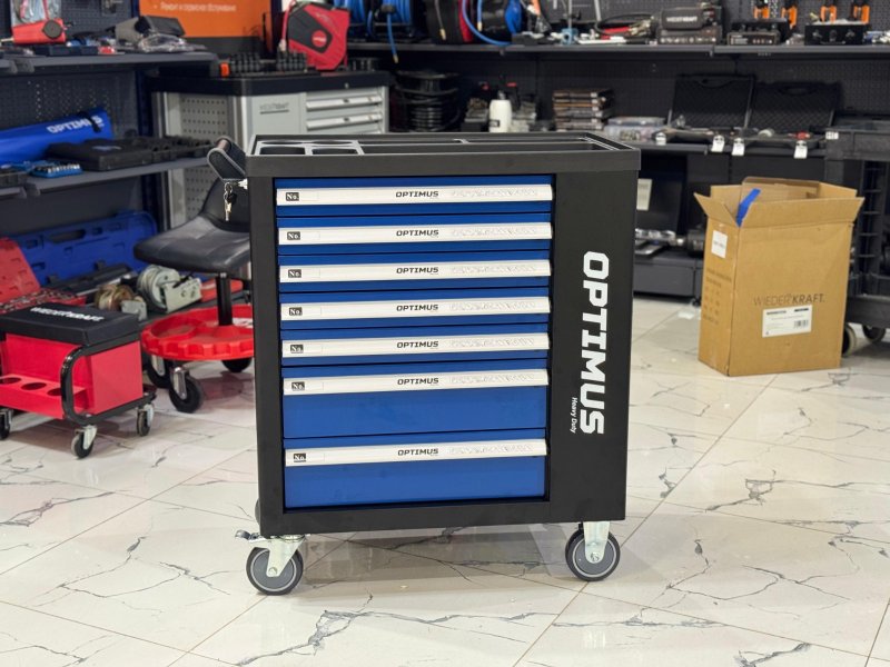 OPT-917P Тележка инструментальная 7 полок с набором инструментов, пластиковая столешница (289 предметов) Optimus купить в Уфе цена ✅ - Все для СТО