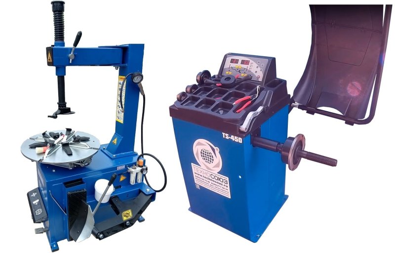 Комплект из полуавтоматического шиномонтажного стенда TS-21, для колёс 99% автопарка России. От Матиза до Land Cruiser 200, Спринтеров, Газелей и пр. Для дисков: внешний 11÷19”, внутренний 12÷22”. Большой круглый стол Ø 560мм. В комплекте: пистолет для подкачки шин + монтажка + пластиковые накладки на зажимные кулачки + регулятор давления с влагоотделителем и манометром. Может комплектоваться «третьей рукой» для работы с низким профилем (опция). Очень надёжный шиномонтажный станок, рекомендуем + TS-450 Балансировочный станок (с без лазера). В комплекте: кожух с автозапуском + клещи + кронциркуль + быстрозажимная гайка + набор конусов.  Для колес легковых автомобилей, мотоциклов, «Газелей», «Спринтеров» и т.п. Ø до 760мм. Размеры диска: ширина 3–9” (76-228 мм) , диаметр диска 10–21” (254-533 мм) . Максимальный вес колеса с диском – 65кг. C кожухом. Точность ±1гр. Напряжение 220В. Режимы DINAMIC, STATIC, ALU1, ALU2, ALU3,  ALUS, ST. Автокалибровка. Режим OPT. Гарантия 12 мес.  Шиномонтажные станки 220В или 380В на выбор.
