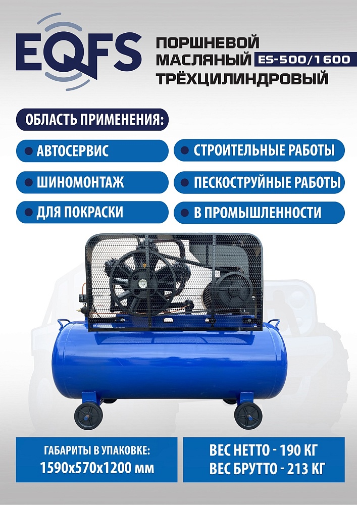 ES-500/1600 Компрессор поршневой трехцилиндровый купить в Уфе цена ✅ - Все для СТО