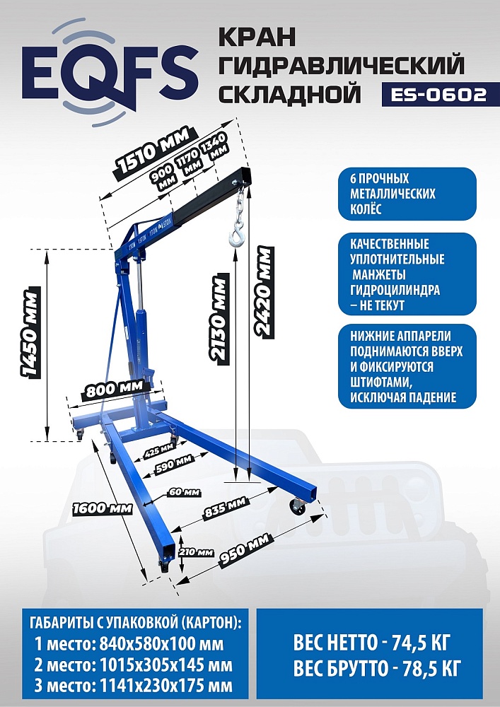 ES-0602 Кран гаражный, 2 т купить в Уфе цена ✅ - Все для СТО
