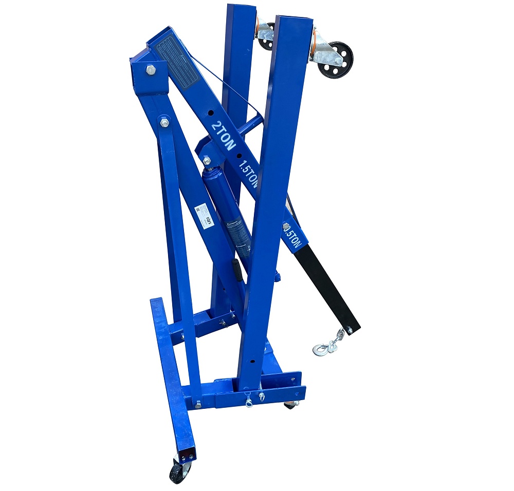 Кран гаражный гидравлический, складной.  Грузоподъемность 2,0 т. Высота подъема 2380мм. Длина стрелы 1500мм. Высота крана 1400мм.