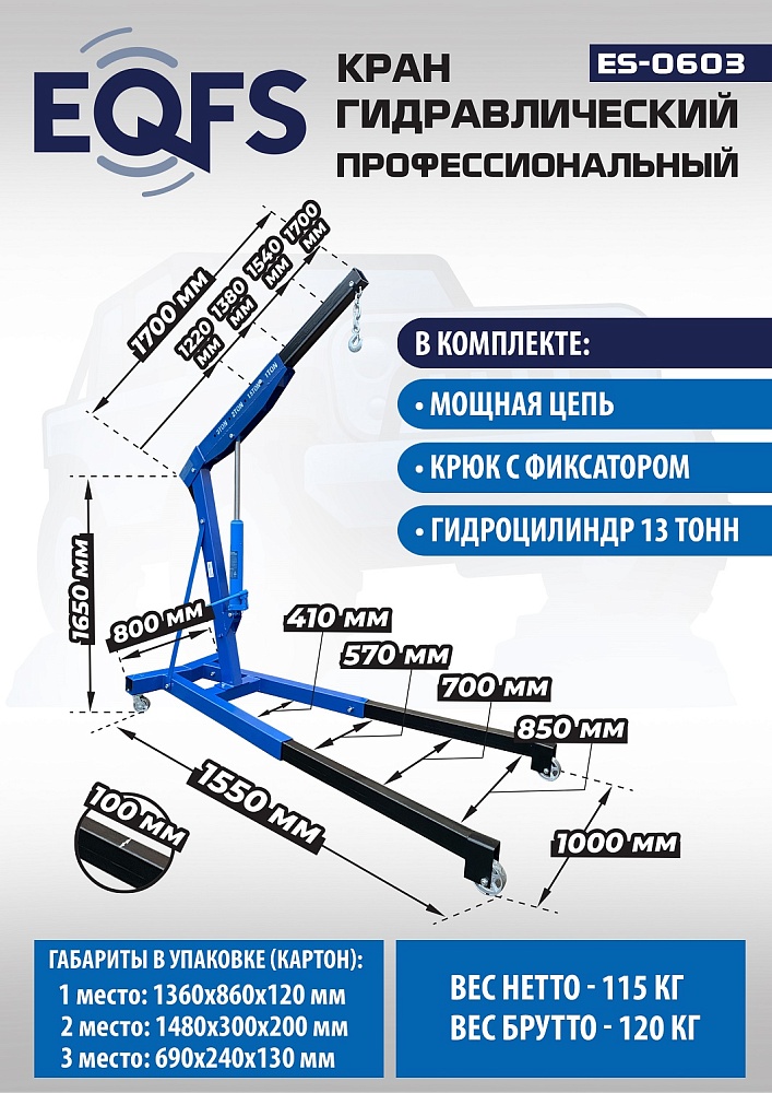 ES-0603 Кран гаражный, 3 т купить в Уфе цена ✅ - Все для СТО