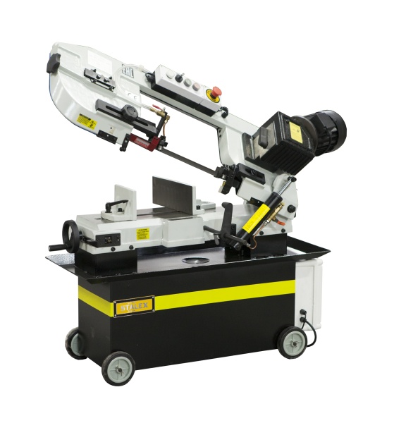 Станки Stalex BS-712 имеют высоту полотна 20 мм, в зависимости от комплектации поворот губок тисков или возможность поворота рамы пилы, а также привод клиноременной или зубчатый. Система СОЖ в стандартной комплектации.