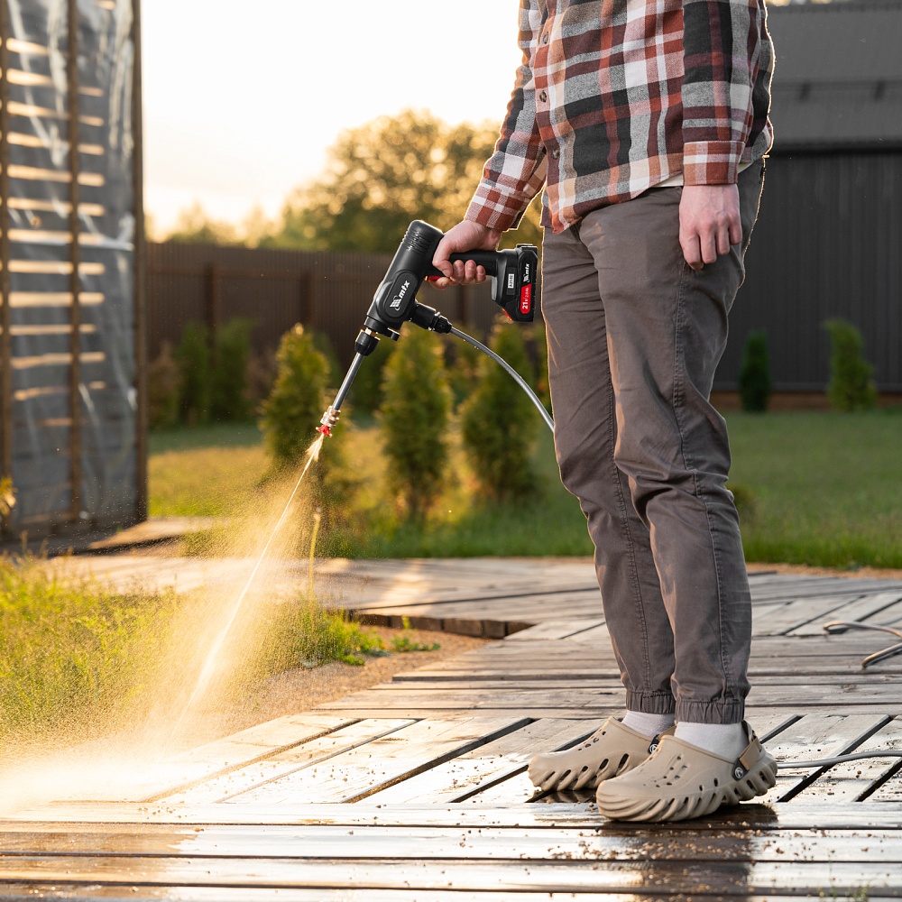 Аккумуляторная батарея - 2 штШланг 5мФильтрБыстросъемный коннекторПенокомплектФорсунки - 2 штЗарядное устройство