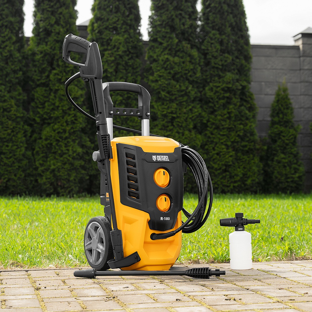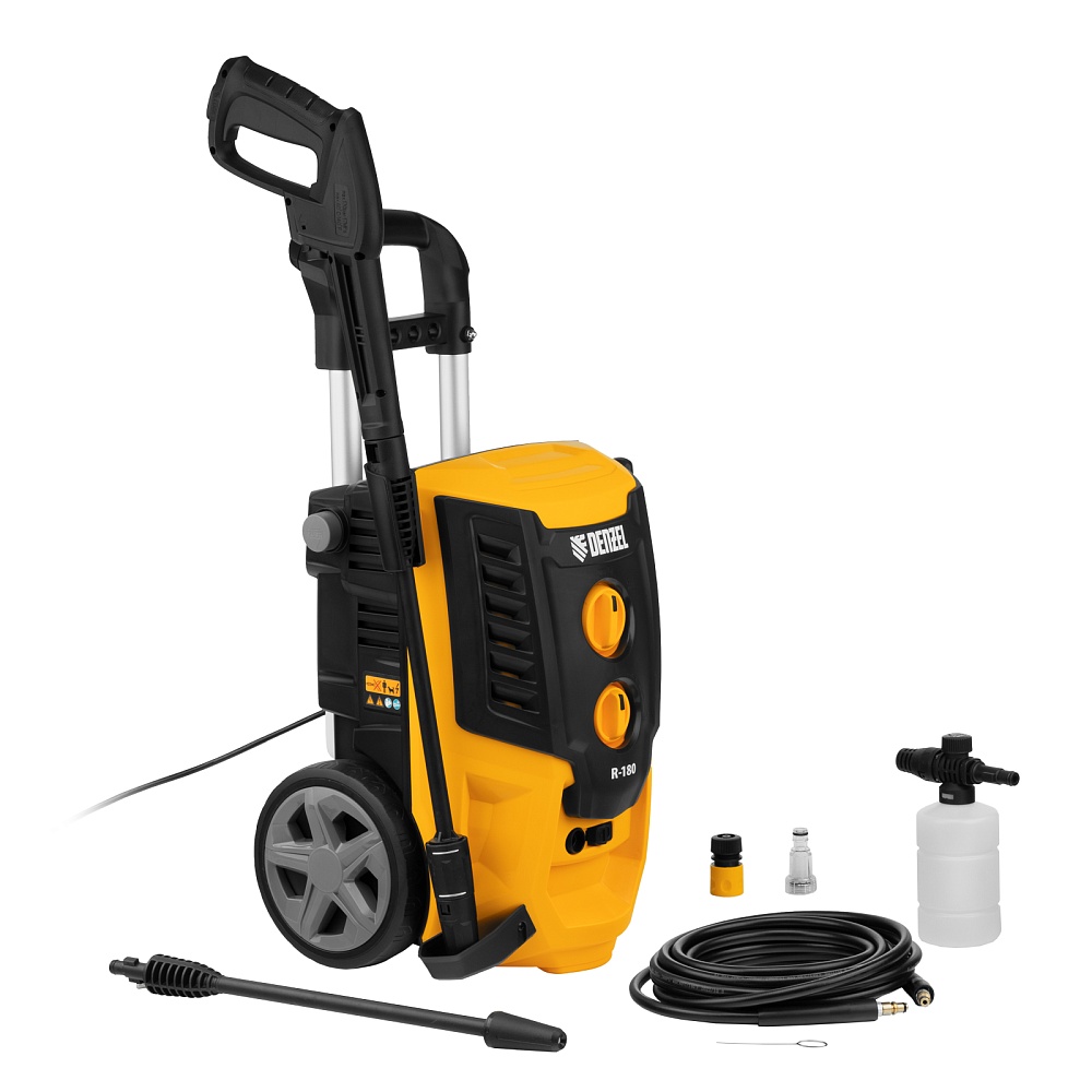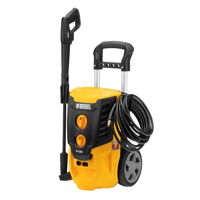 Моечная машина высокого давления R-180, 2200 Вт, 180 бар, 380 л/ч, колесная Denzel