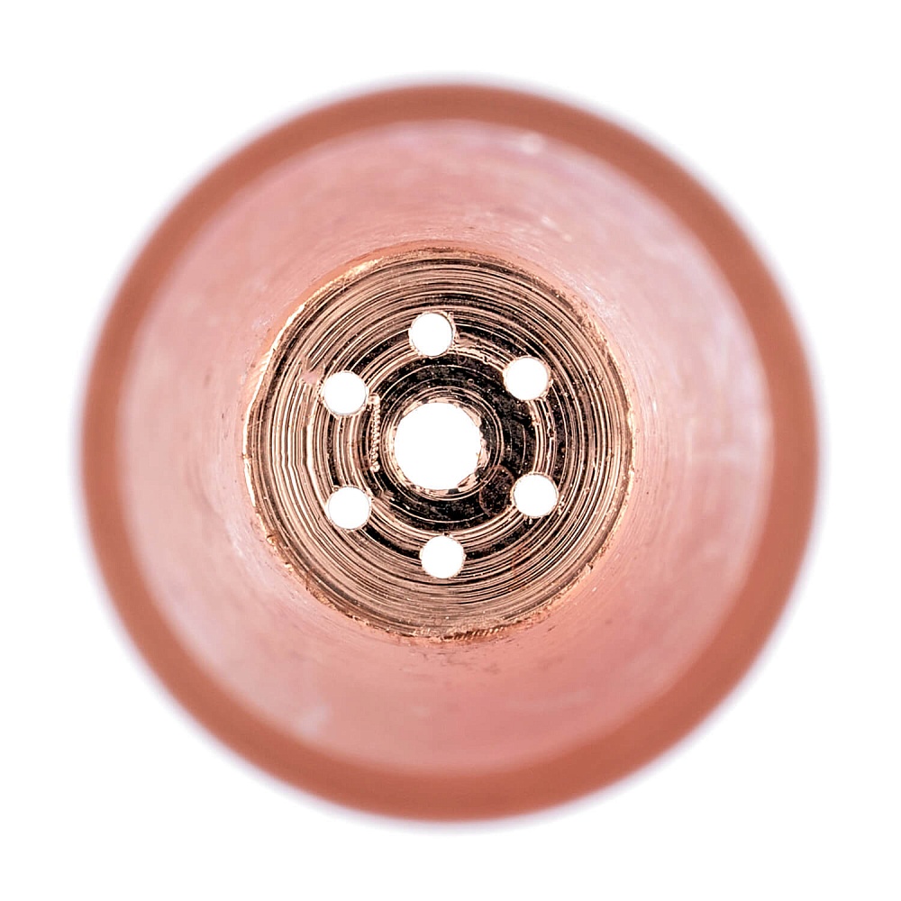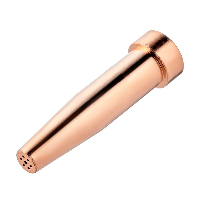 Медный наружный мундштук для ацетиленового инжекторного резака Р3А. Маркировка мундштука №2А. Толщина разрезаемого металла зависит от установленного внутреннего мундштука.