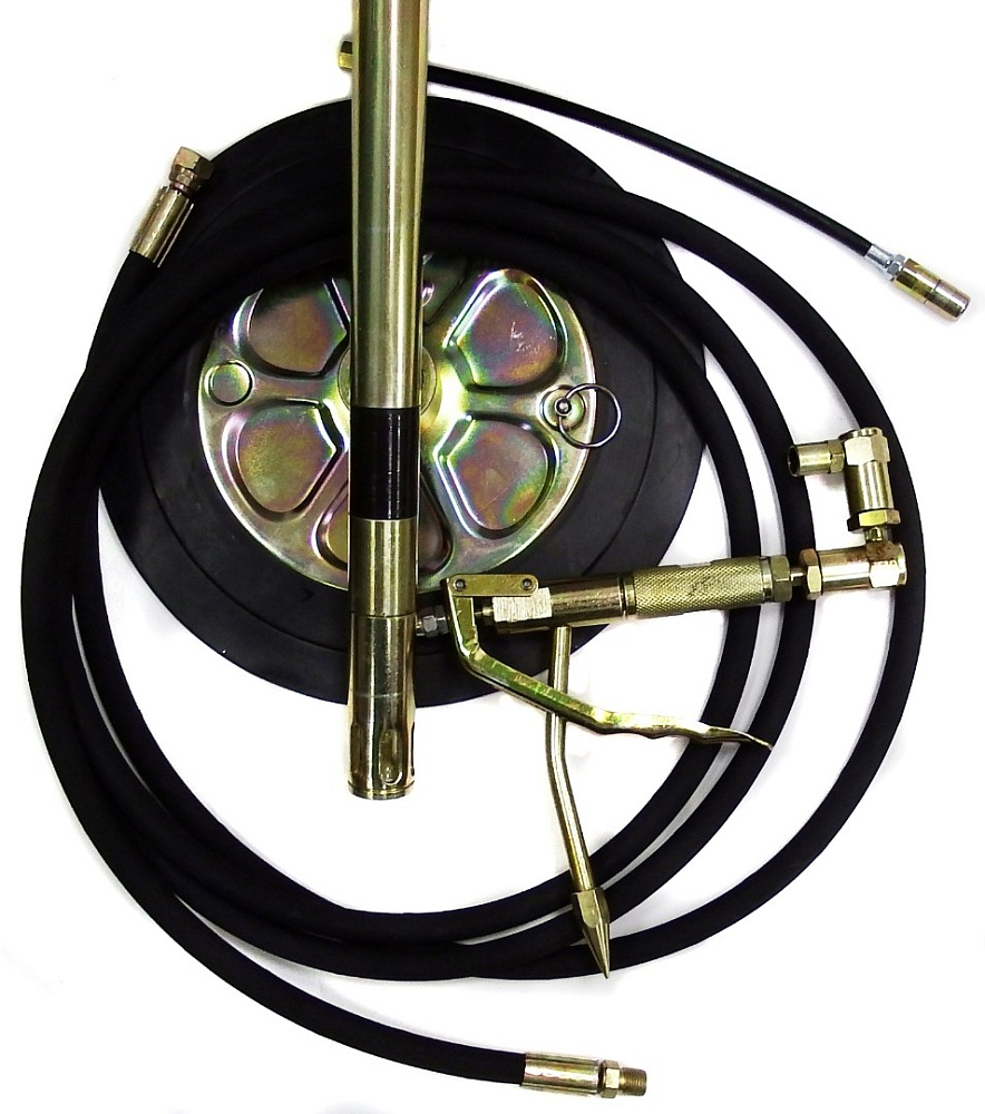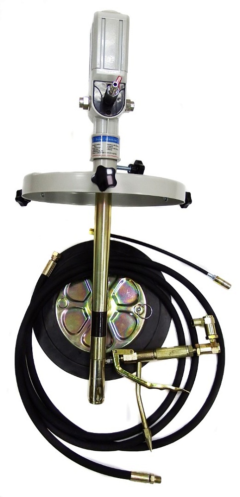 Устройство приводится в действие воздушным компрессором, что не создает искр во время работы и безопасно для экологии. Компрессор и тележка для перевозки бочки в комплект не входят.