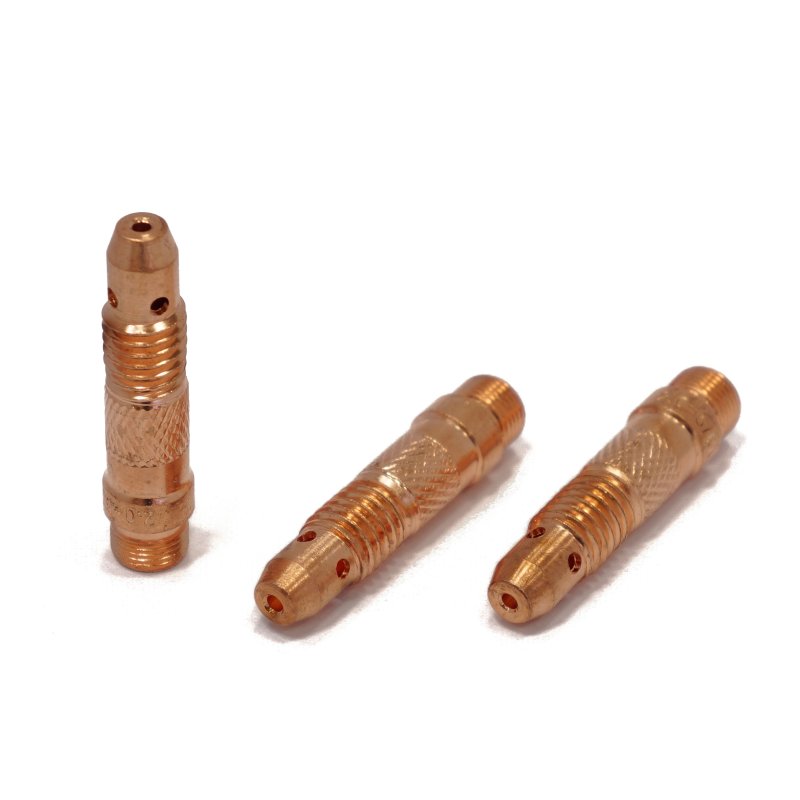 Держатель цанги – устройство для крепления цанги в сопле аргонодуговой горелки. С помощью отверстий в цангодержателе защитный газ во время TIG сварки подаётся к сварочной ванне и защищает её от вредного воздействия кислорода.