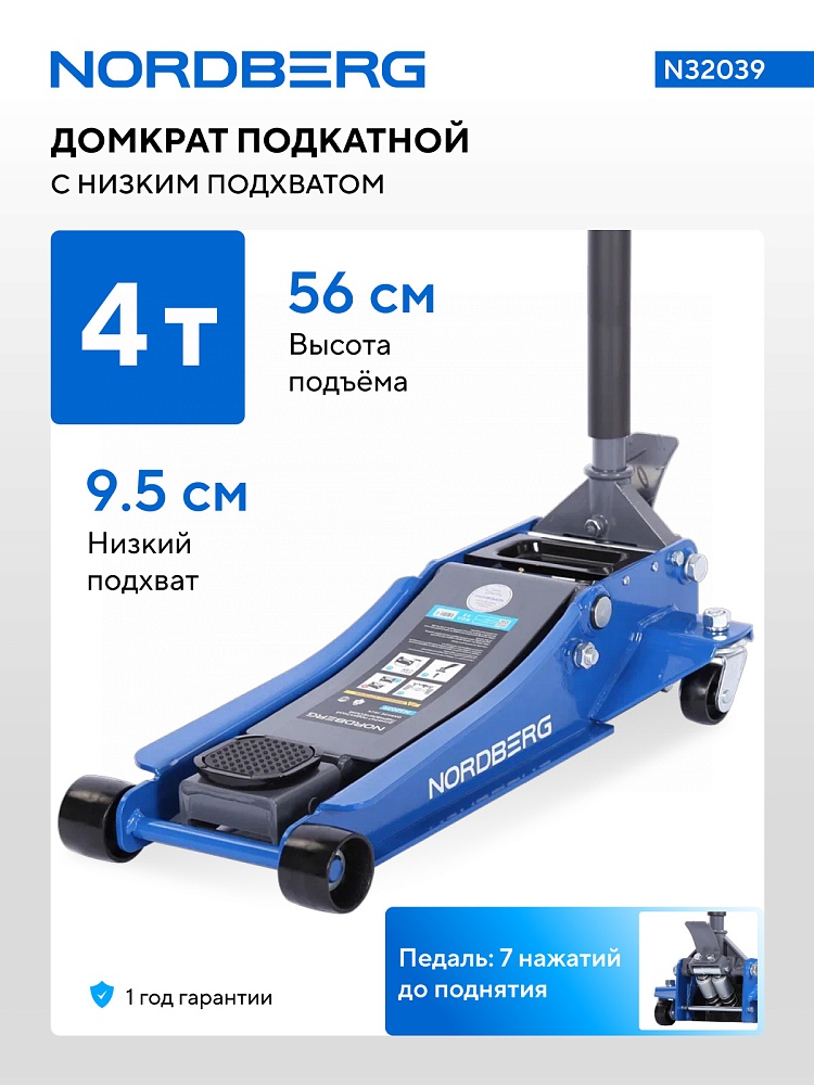 Домкрат подкатной 4 т, низкий подхват, педаль NORDBERG N32039 купить в Уфе цена ✅ - Все для СТО