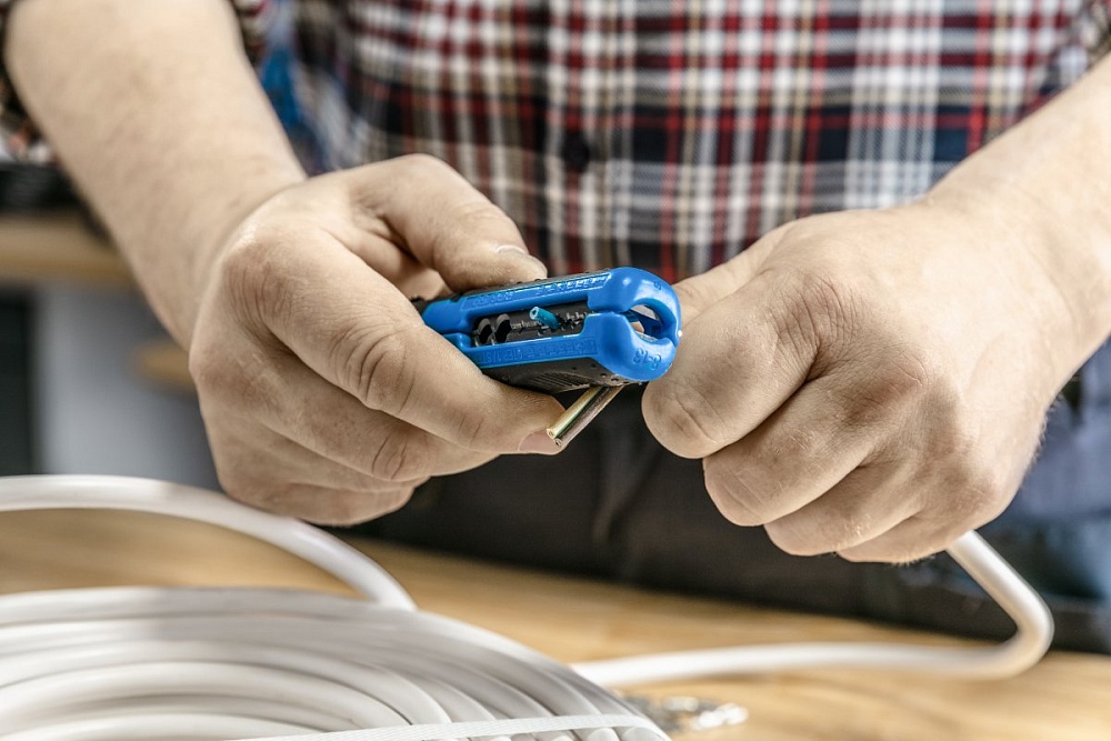 Удобный универсальный съемник изоляции для коаксиальных кабелей и круглых кабелей различного сечения.