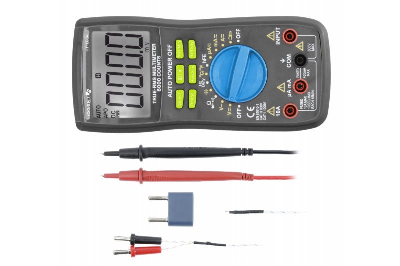 мультиметр может измерять напряжение постоянного и переменного тока до 600 В, постоянный и переменный ток до 10 А и сопротивление до 60 MΩ, емкость до 60 мФ, частота до 10 МГц, тестирование диодов и непрерывность работы;