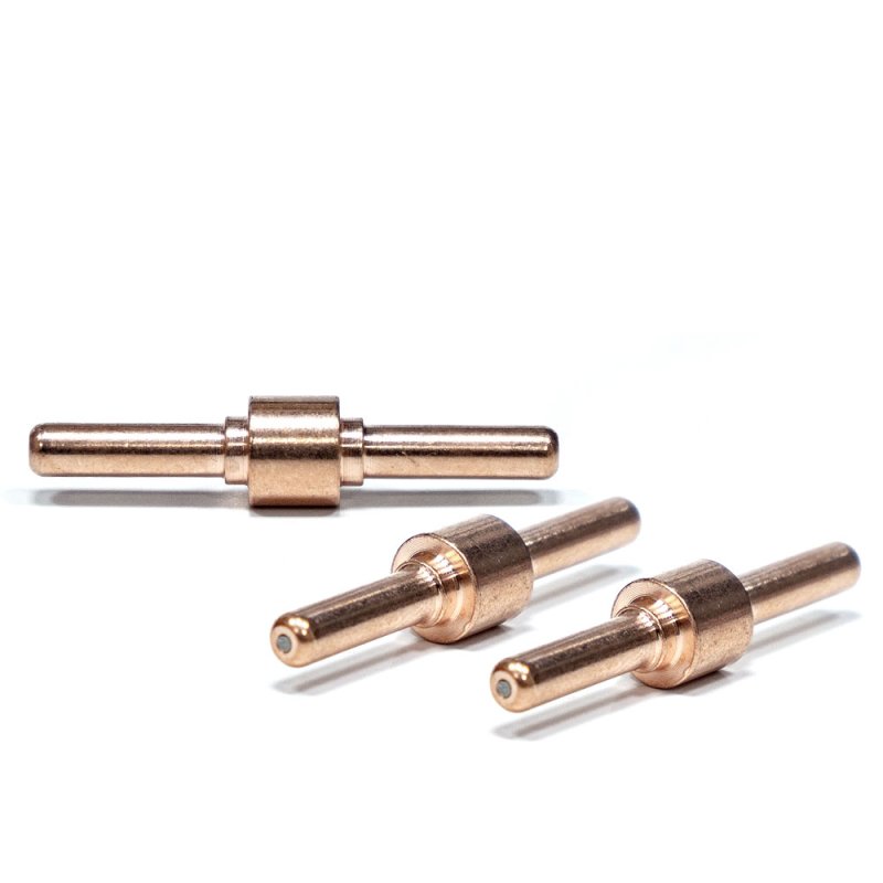 Катод - расходная часть плазмотрона. Оснастку изготавливают из сплава меди и латуни. Данный сплав обладает отличными показателями токопроводимости, высокими прочностными характеристиками, а так же способствует лучшему теплоотводу. Чаще всего для работы в нейтральных плазмообразующих средах в качестве сердечника электрода используют вольфрам, в окислительных средах применяют катоды из циркония или гафния.