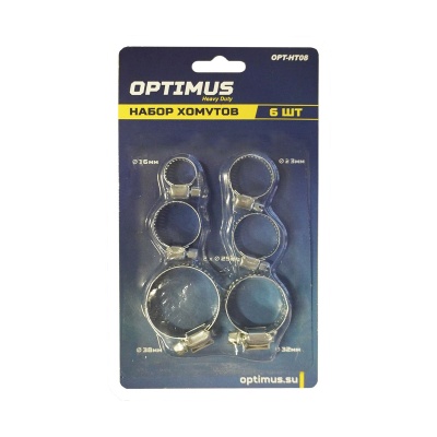OPT-HT08 Хомуты червячные набор 6шт. 10-38 OPTIMUS купить в Уфе цена ✅ - Все для СТО