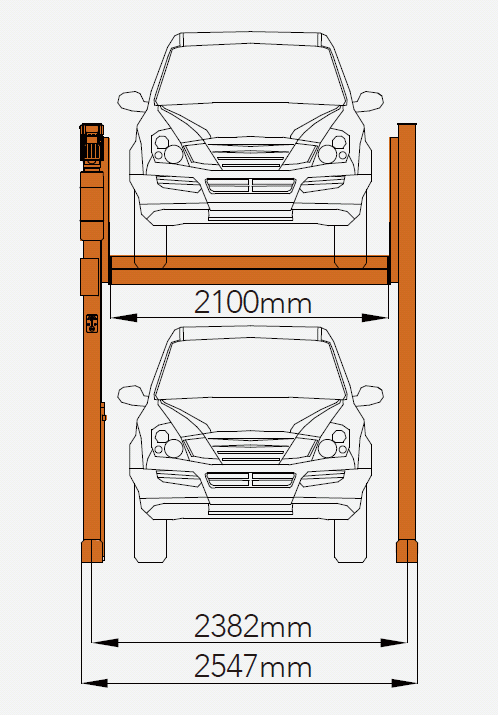 Ширина подъемника 2547 мм