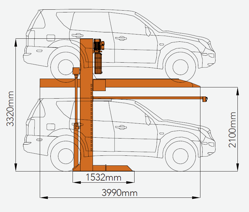 Парковочный электрогидравлический подъемник, грузоподъемность 2,7 т, длина - 3990 мм