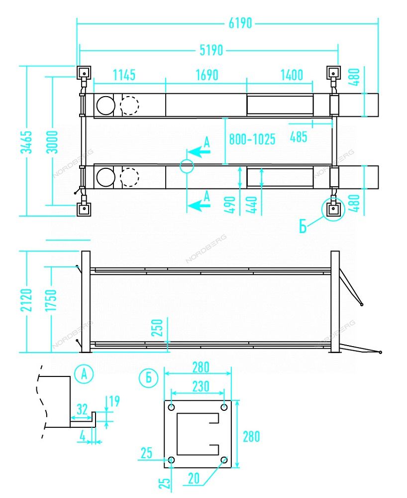 Подъемник четырехстоечный NORDBERG 4450_MG – высококачественное подъемное оборудование для ремонта легковых авто, внедорожников, минивэнов и легких грузовиков