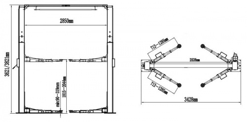Ширина подъемника 3428 мм
