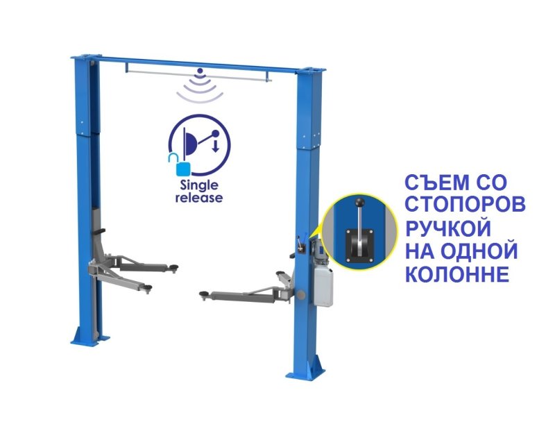 • Съём со стопоров одной ручкой на колонне — экономия времени.