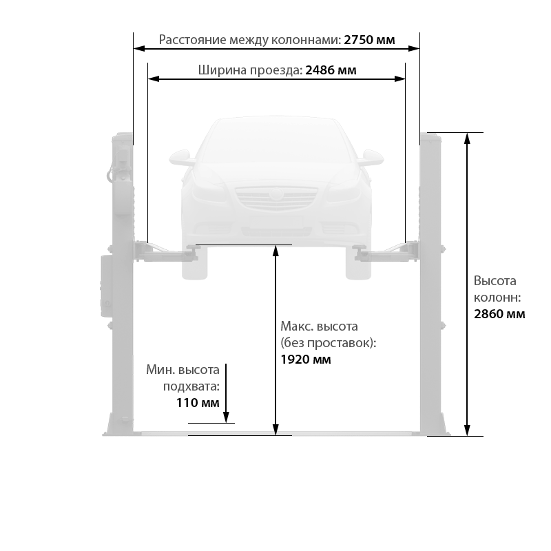 Усиленные стойки и габариты опорной платформы обеспечивают абсолютную жесткость подъемника Launch и уменьшают нагрузку на фундамент.